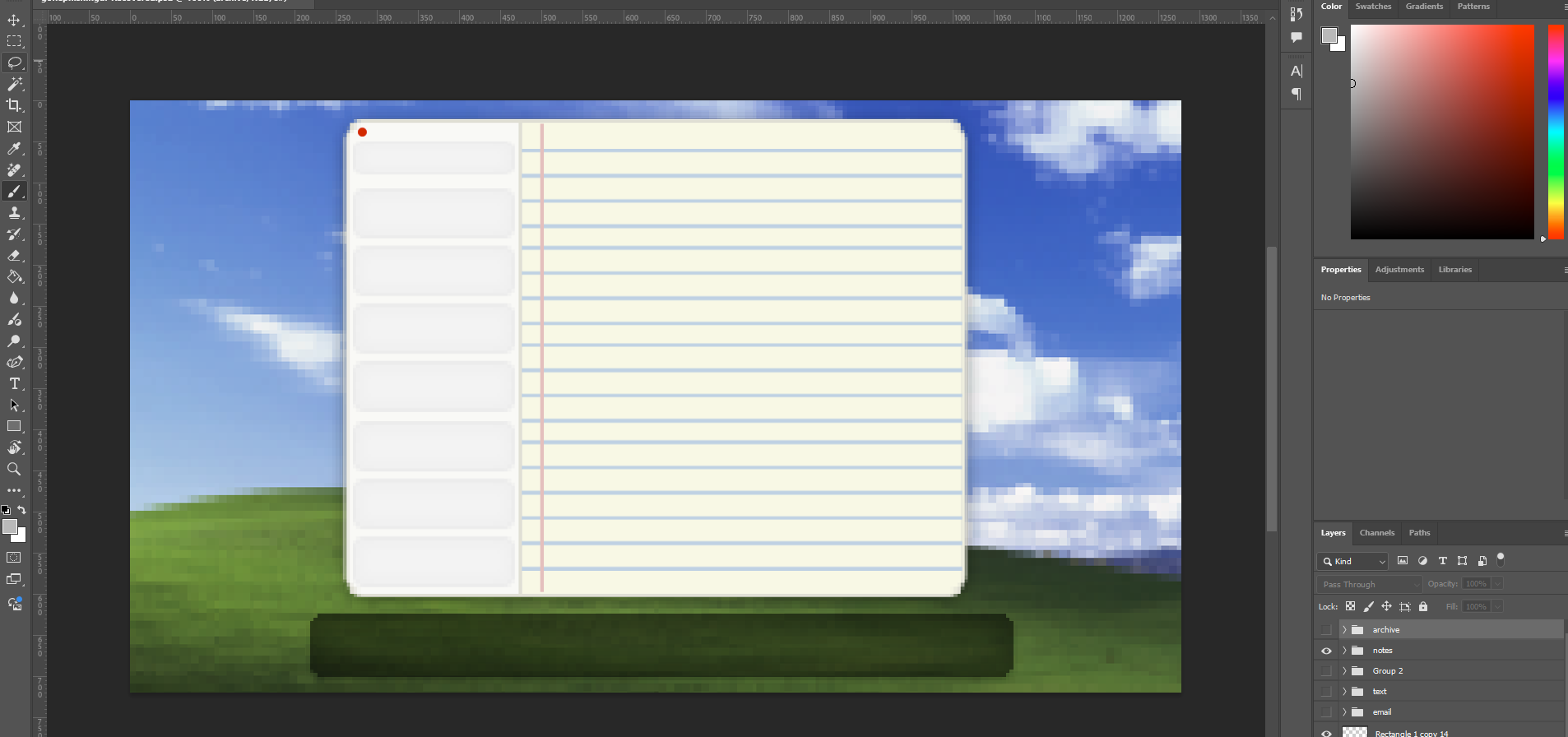 - For the notes, I purposefully added colors that resemble some sort of notes application, with lines and colors. Also includes buttons on the sides to switch to different note files.